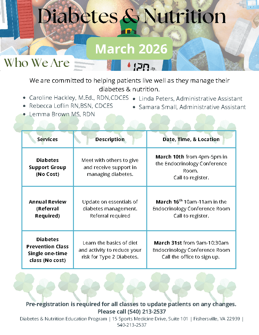 Meet with others to give and receive support in managing diabetes. View calendar here.